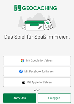 Öffne www.geocaching.com und erstelle dir ein Benutzerkonto. Lade die Geocaching App auf dein Smartphone herunter und melde dich mit deinem Cacherrname an